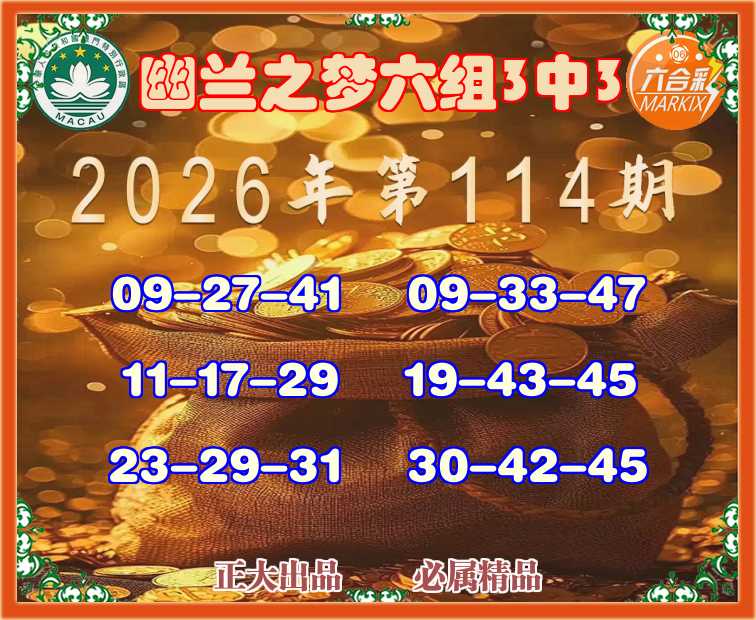 114期:【幽兰之梦】 🎉六组3中3🎉