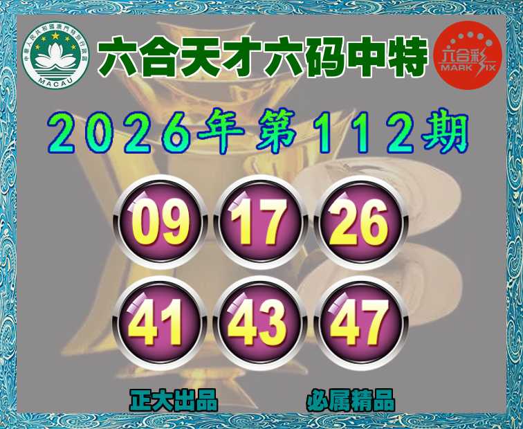 112期:《六合天才》 🐓六码中特🐓【09.17.26.41.43.47】开:09