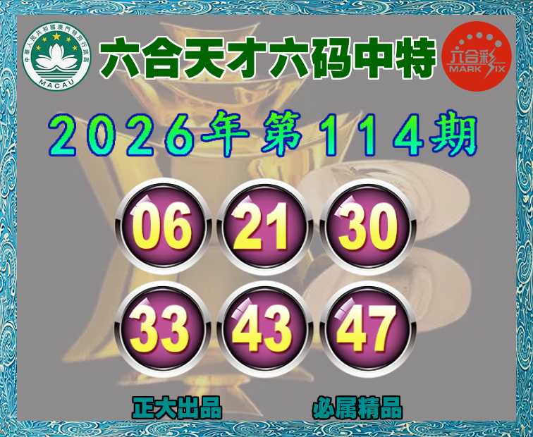 114期:《六合天才》 🐓六码中特🐓【06.21.30.33.43.47】开:30