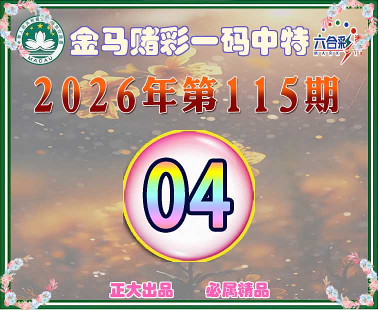 115期:《金马赌彩》 👛一码中特👛【04】开:04