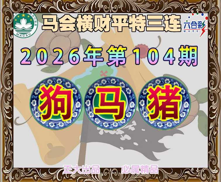 104期: 🍟『马会横财』 🍟平特三连🍟【狗马猪】开:狗45,马01,猪20