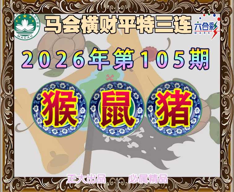 105期: 🍟『马会横财』 🍟平特三连🍟【猴鼠猪】开:猴11,鼠19,猪32