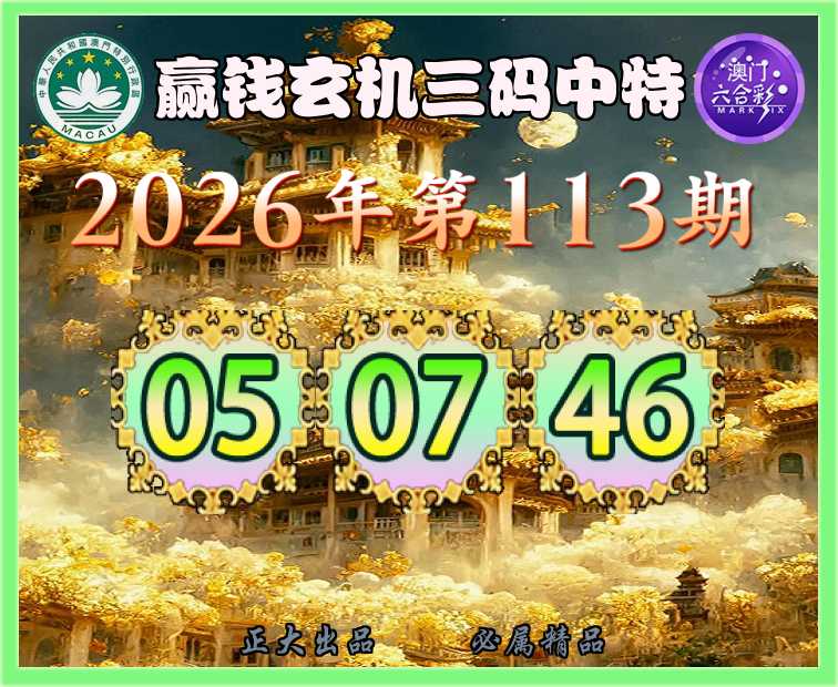 113期:【赢钱玄机】 🥼三码中特🥼【05.07.46】开:02